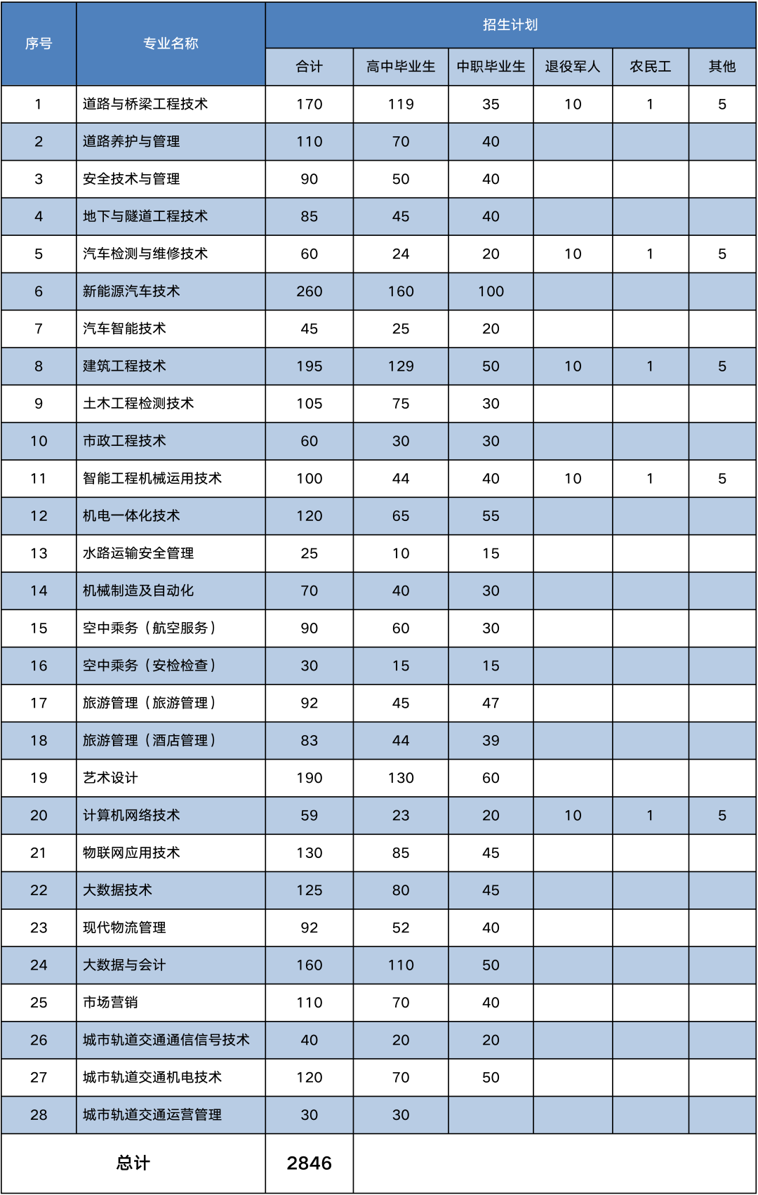 第六条 贵州交通职业技术学院2022年分类招生计划表